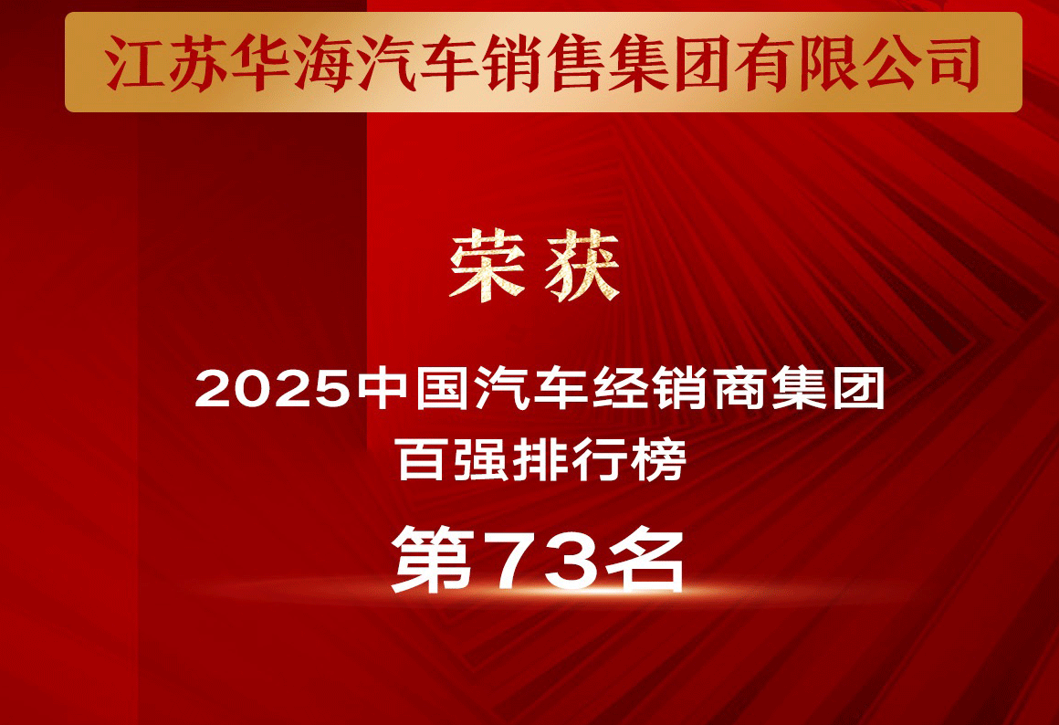 江蘇華海汽車集團榮登2025中國汽車經銷商百強榜
